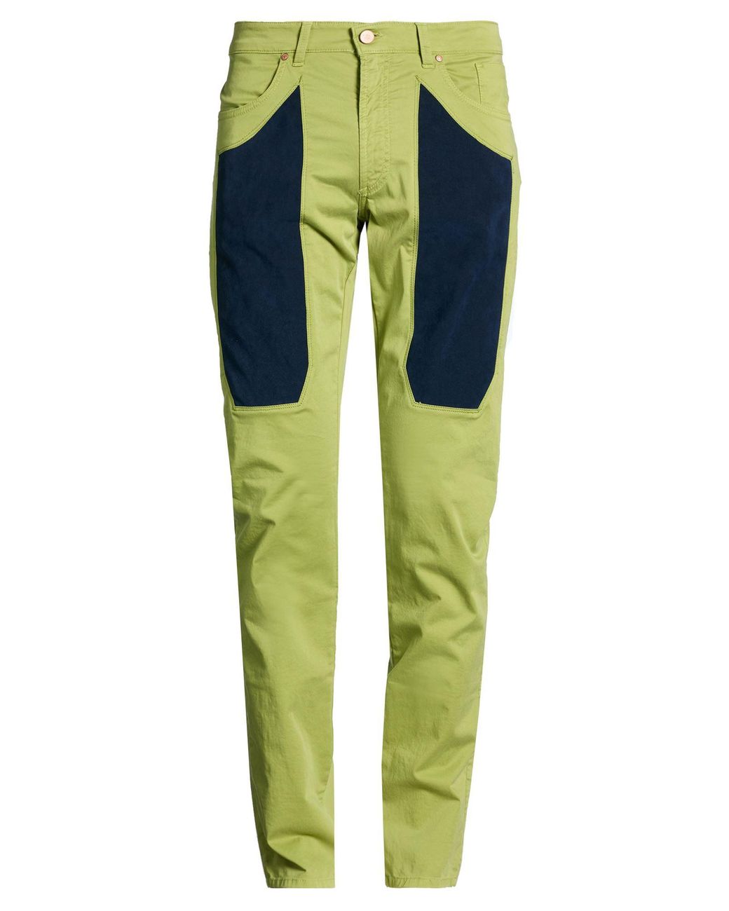 JECKERSON. Casual Hosen, Tuch, Wildleder-Look, Mit Stretch-Anteil, zweifarbiger Print, Brand Logo, niedrige Taille, Schmal zulaufendes Bein, Regular fit, Reißverschluss, Fünf Taschen, Maschinenwäsche oder Reinigung, nicht Bleichen, Trockner geeignet. 97% Baumwolle, 3% Elastan. Farbe: grün