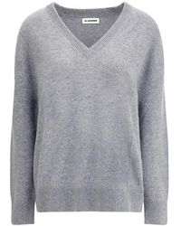 Weiter zu MiintoShoppe im Sale: Heben Sie Ihren Stil mit dem Oversize Sweater von Jil Sander hervor. Hergestellt aus einer luxuriösen Wolle- und Kaschmirmischung, verfügt dieses essentielle Stück über ein zeitgemäßes Design mit geripptem V-Ausschnitt,