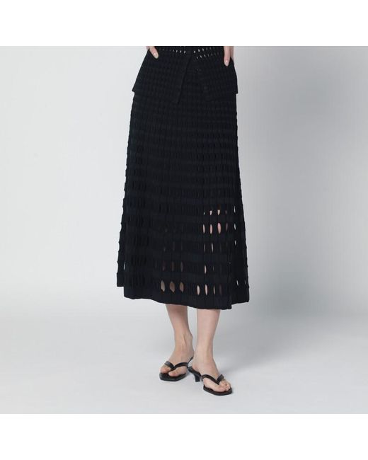Damen Drue Schwarzer Midirock Aus Lochstrick