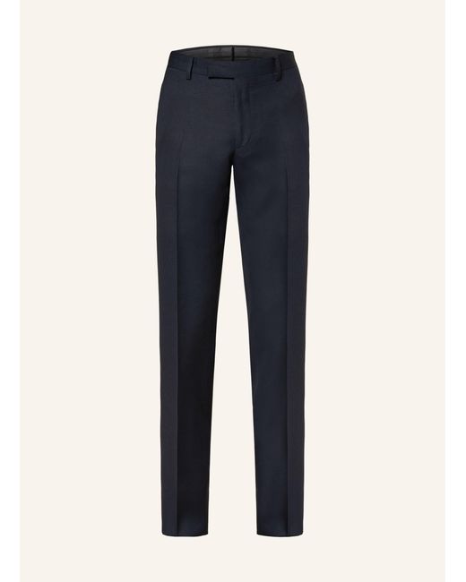 Verkürzte Leibhöhe. Langes Bein. Schmal zulaufendes Bein. Gürtelschlaufen. Unifarben. Passform: Slim Fit. Paspeltaschen. Seitliche Eingrifftaschen. Knopf-, Haken- und Reißverschluss. Bügelfalten. Made in Italy. Farbe: blau