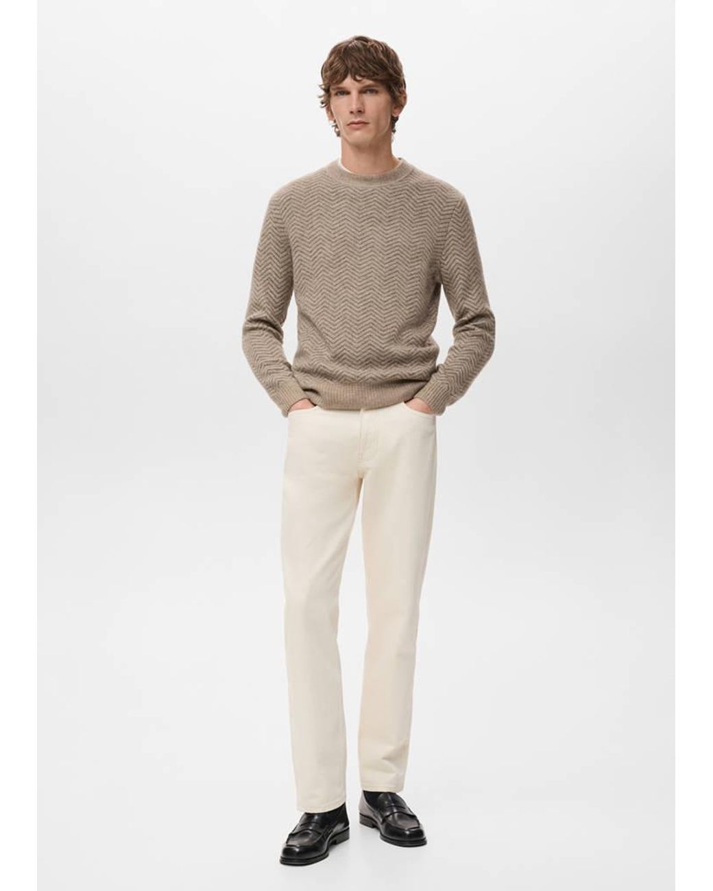 Die Farbe Beige ist ausschließlich online erhältlich, Regular Fit, Streifendesign, Mischgewebe mit Wolle, Rundhalsausschnitt, Gerippter Kragen, Bündchen und Saum, Lange Ärmel Farbe: natur