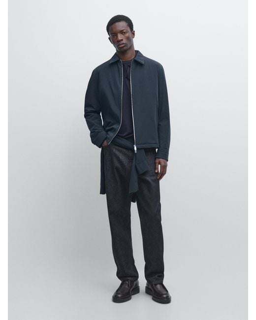 Hemdkragen. Lange Ärmel. Zwei Reißverschlusstaschen. Zwei-Wege-Reißverschluss. Jacke aus doppeltem Stretch-Gewebe Farbe: blau
