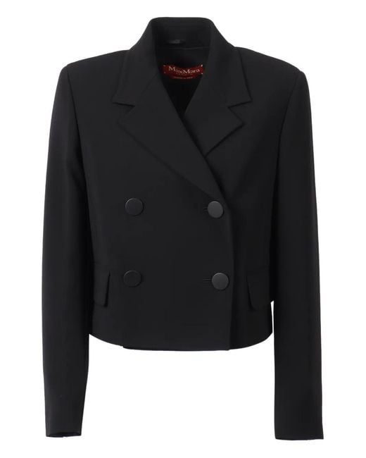 Schwarz doppelreihig Knopfverschluss fallendes Revers Klappentaschen lange Ärmel Size: 42. Gender: Female. Material:Triacetat/Polyester/Bio-Acetat/Polyester.