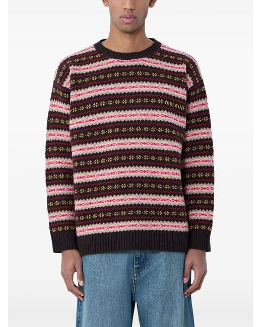 Braun Fair-Isle-Muster runder Ausschnitt lange Ärmel gerippter Saum Size: 40. Gender: Male. Material:Wolle.