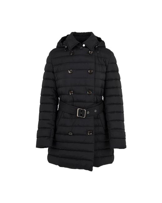 Damen Technische down-proof jacke mit abnehmbarer kapuze und gürtel in schwarz
