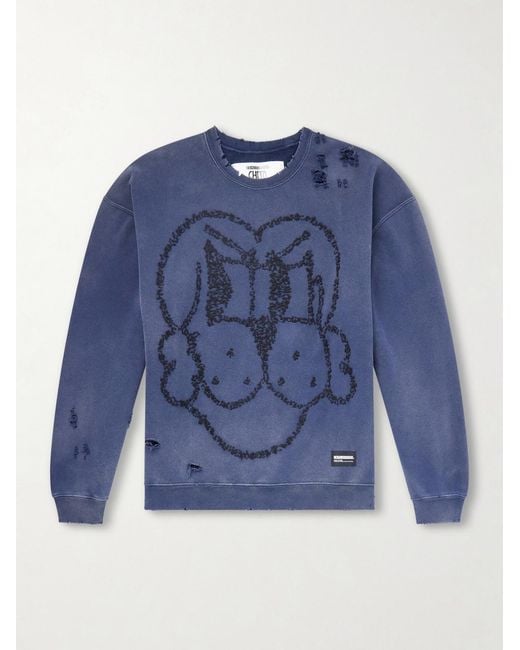 Herren Chito Savage Sweatshirt aus Baumwoll-Jersey mit Stickerei in Distressed-Optik in blau