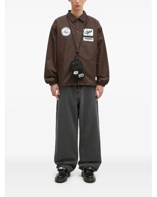 Braun Knopfverschluss vorne mehrere Patches lange Ärmel Knopfmanschetten Logo-Print hinten Size: XL. Gender: Male. Material:Nylon/Polyester.