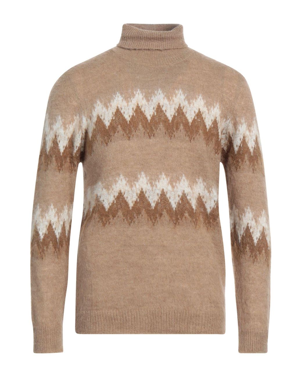 OFFICINA 36. Handgestrickt, Leichter Strick, ohne Applikationen, Multicolor-Print, Rollkragen, lange Ärmel, ohne Taschen. 42% Acryl, 30% Polyamid, 14% Wolle, 14% Mohairwolle.