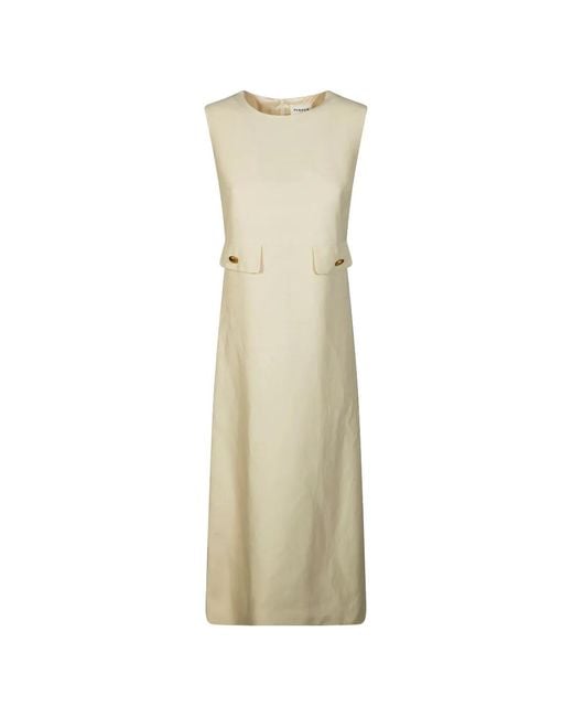 Damen Maxikleid mit geknöpften Taschen in natur