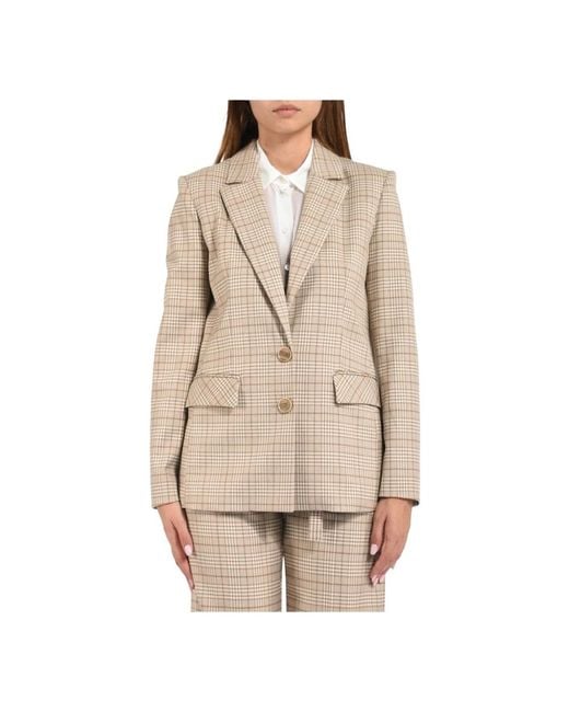 Shoppe im Sale: Der Fluid Blazer mit Karomuster von Patrizia Pepe vereint eine entspannte Silhouette mit einer Zwei-Knopf-Front für einen eleganten Alltagslook. Der karierte Polyviskose-Stoff und die Gürtel-Effekt-Bindebänder auf der Rückseite sorgen für Struktur und optisches Interesse. Hauptmerkmale: Beige | Polyviskose-Gewebe | Zwei-Knopf-Verschluss | Gürtel-Effekt-Bindebänder auf der Rückseite | Fliegen-Detail an den Manschetten | Reverskragen | Karomuster | Lange Ärmel | Entspannte Silhouette | Saubere Linien | Abmessungen & Passform: Reguläre Passform | Model ist 176 cm groß und trägt IT 40 | Zusammensetzung & Pflege: 64% Polyester, 34% Viskose, 2% Elastan | Hauptfutter: 100% Polyester | Nicht mit Wasser waschen. Nur professionelle chemische Reinigung (Perchlorethylen, schonendes Verfahren). Farbe: natur