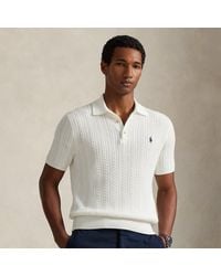 Weiter zu Ralph LaurenDieser Pullover mit Zopfmuster kombiniert eine von Ralph Lauren Laurens zeitlosem Poloshirt inspirierte Silhouette mit federleichtem Baumwollgarn, das mit feinen Bürsten gekämmt wird, was zu einem weicheren, langlebigeren Kleidungsstück führt. Farbe: grün