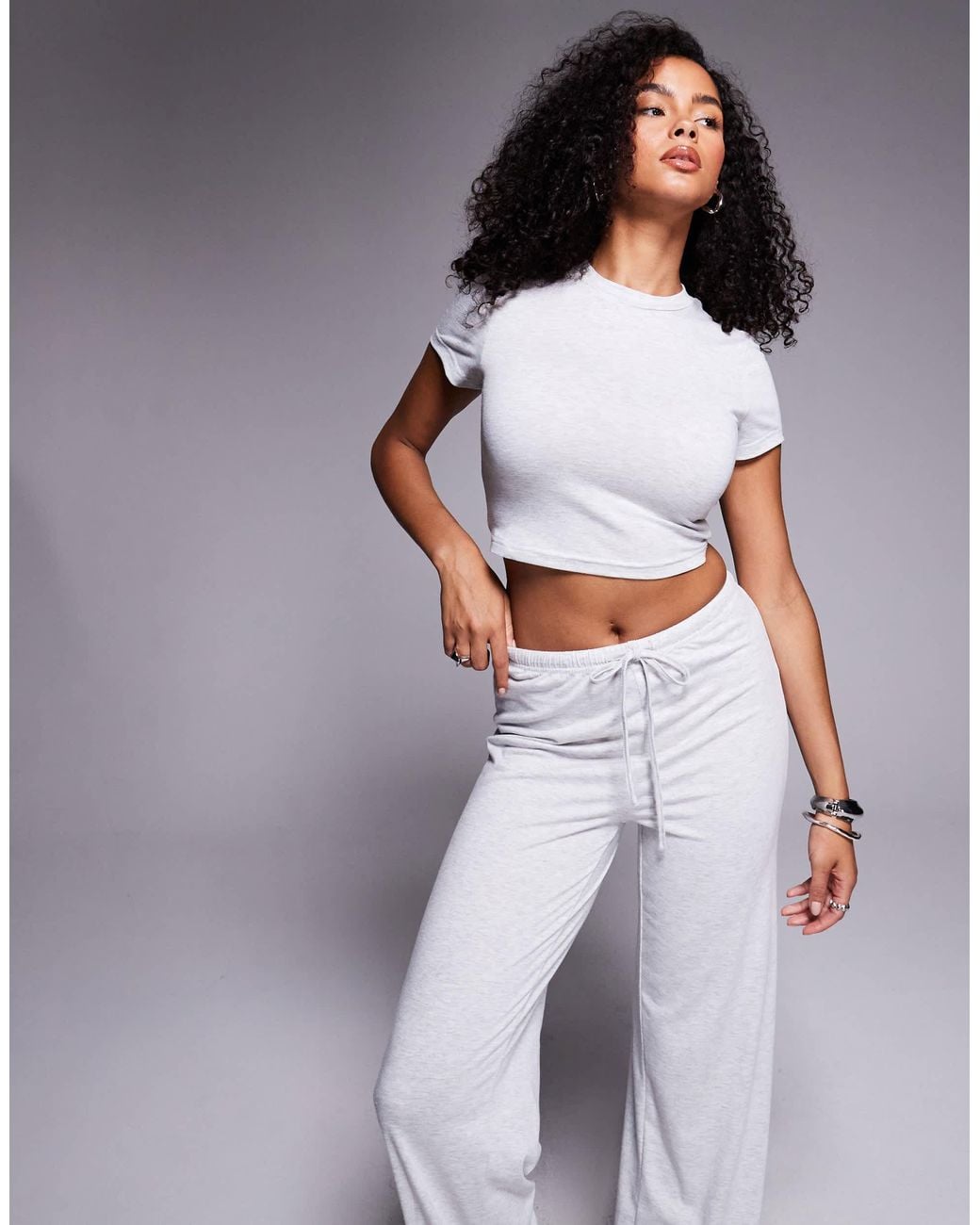 Damen – midvale – set mit hochgeschlossenem cropped-t-shirt und hose mit weitem bein aus feinstrick in grau