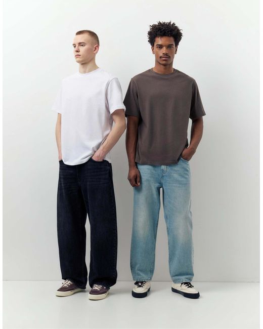 T-Shirts & Trägertops von Pull&Bear Zweier-Pack Rundhalsausschnitt Kurzärmlig Schlichtes Design Normale Passform. Farbe: blau