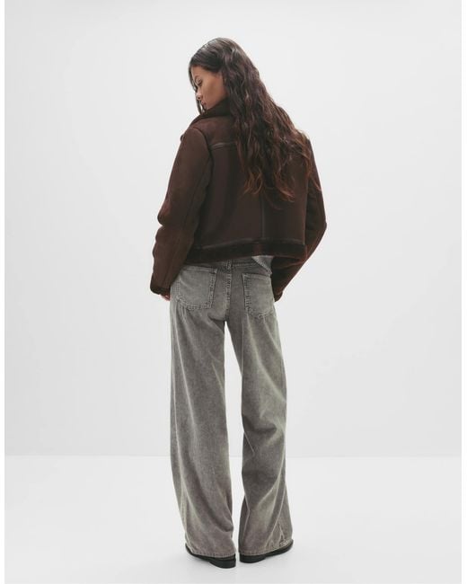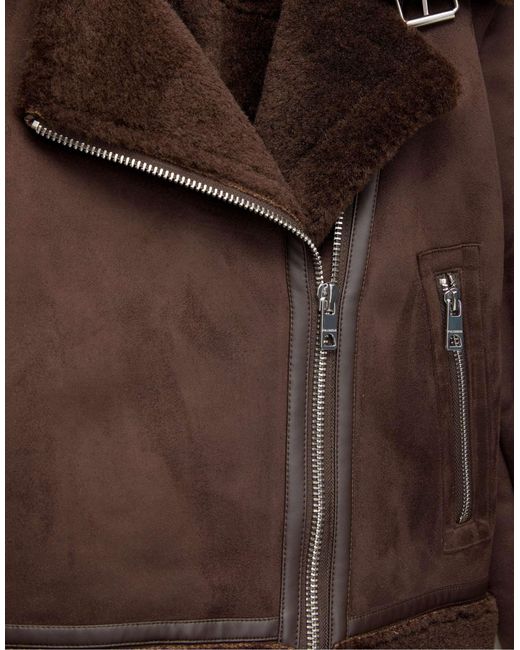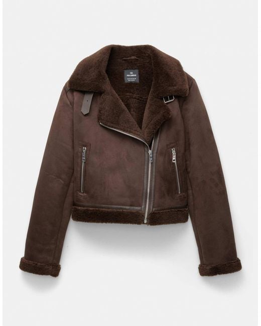 Mäntel & Jacken von Pull&Bear eingekerbter Kragen asymmetrischer Reißverschluss Seitliche Reißverschlusstaschen Kunstpelzbesatz Normale Passform. Farbe: braun