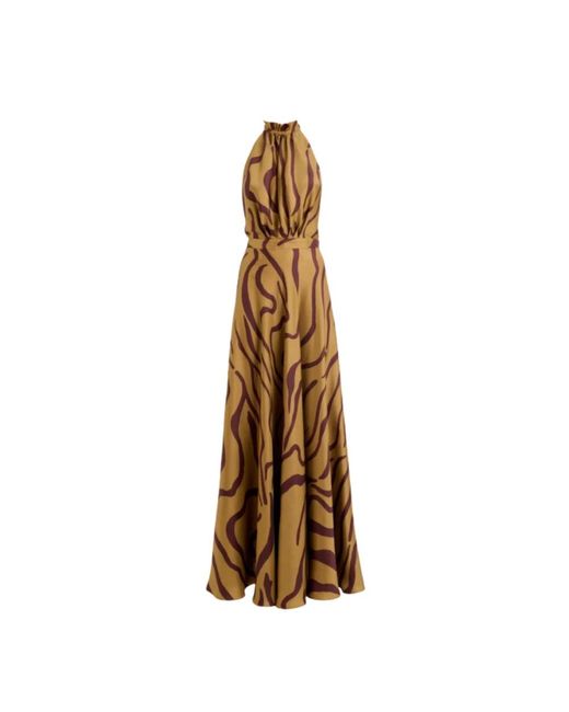 Shoppe im Sale: Raquel Diniz Maxikleid, entworfen für vielseitige Tages- bis Abendgarderobe. Klare Linien und eine schlichte Silhouette machen es einfach, es für Events oder ungezwungene Ausflüge zu stylen. Hauptmerkmale: Braun Farbe: mettallic