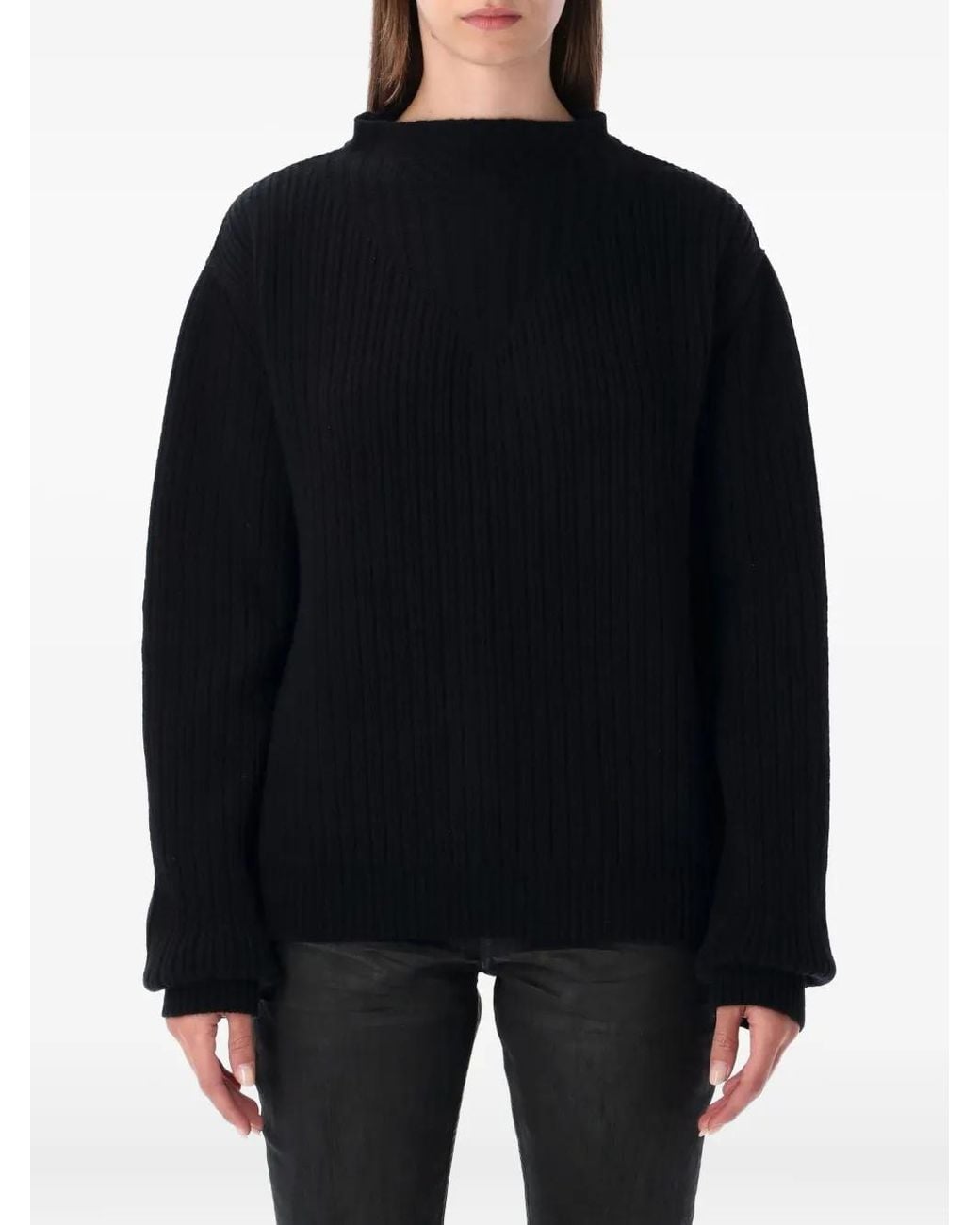 Damen Gerippter Pullover in schwarz