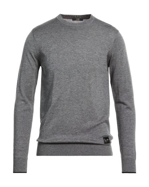 CAVALLI CLASS. Handgestrickt, Mittelschwerer Strick, Brand Logo, Meliert, Rundhalsausschnitt, lange Ärmel, Maschinenwäsche oder Reinigung, nicht Bleichen, Trockner ungeeignet. 30% Wolle, 18% Viskose, 18% Acryl, 17% Polyester, 17% Polyamid. Farbe: grau