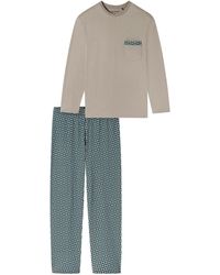 Schiesser Herren Pyjama Lang Comfort Nightwear in blau