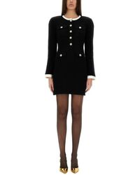 Weiter zu FashionetteDieses Minikleid verkörpert mit seinem hochwertigen Materialmix moderne Eleganz. Ein strukturiertes Oberteil geht in einen ausgestellten Rock über, der durch einen klassischen Kragen und eine Knopfleiste ergänzt wird. Das strukturierte Rippenmuster und die