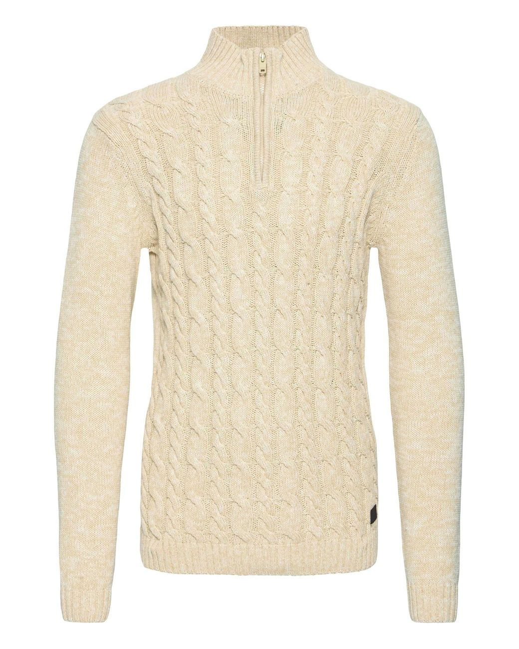 Design: Halbreißverschluss; Verschlussart: Reißverschluss; Material: Recycelte Materialien; Ausschnitt: Troyer; Muster: Unifarben; Extras: Fully fashioned; Passform: Normale Passform; Ärmellänge: Langarm Farbe: natur