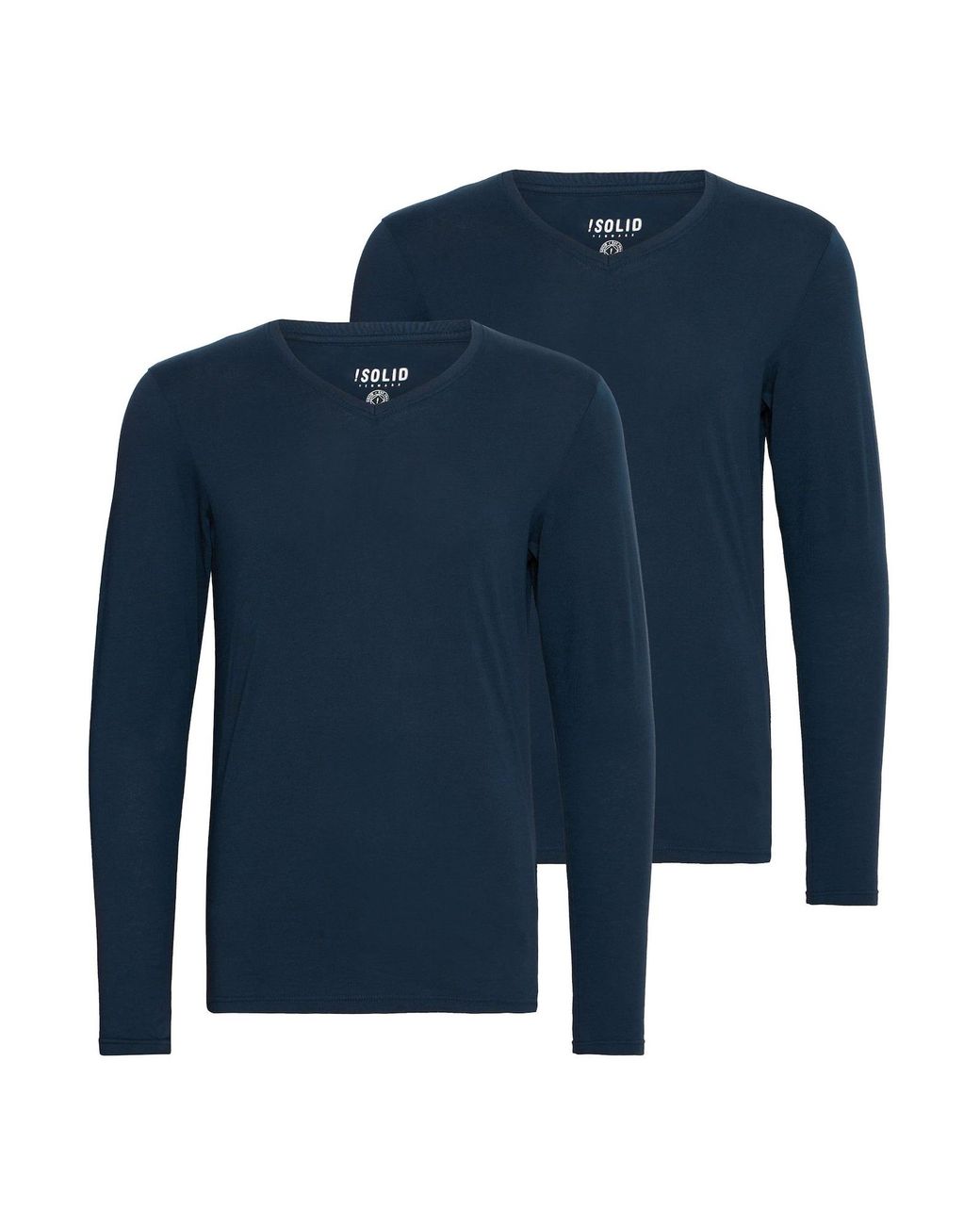 Design: Gerader Saum, Gerader Schnitt; Material: Baumwolle; Ausschnitt: V-Ausschnitt; Muster: Unifarben; Extras: Weicher Griff; Passform: Normale Passform; Multipack: 2er Pack; Ärmellänge: Langarm; Länge: Normale Länge