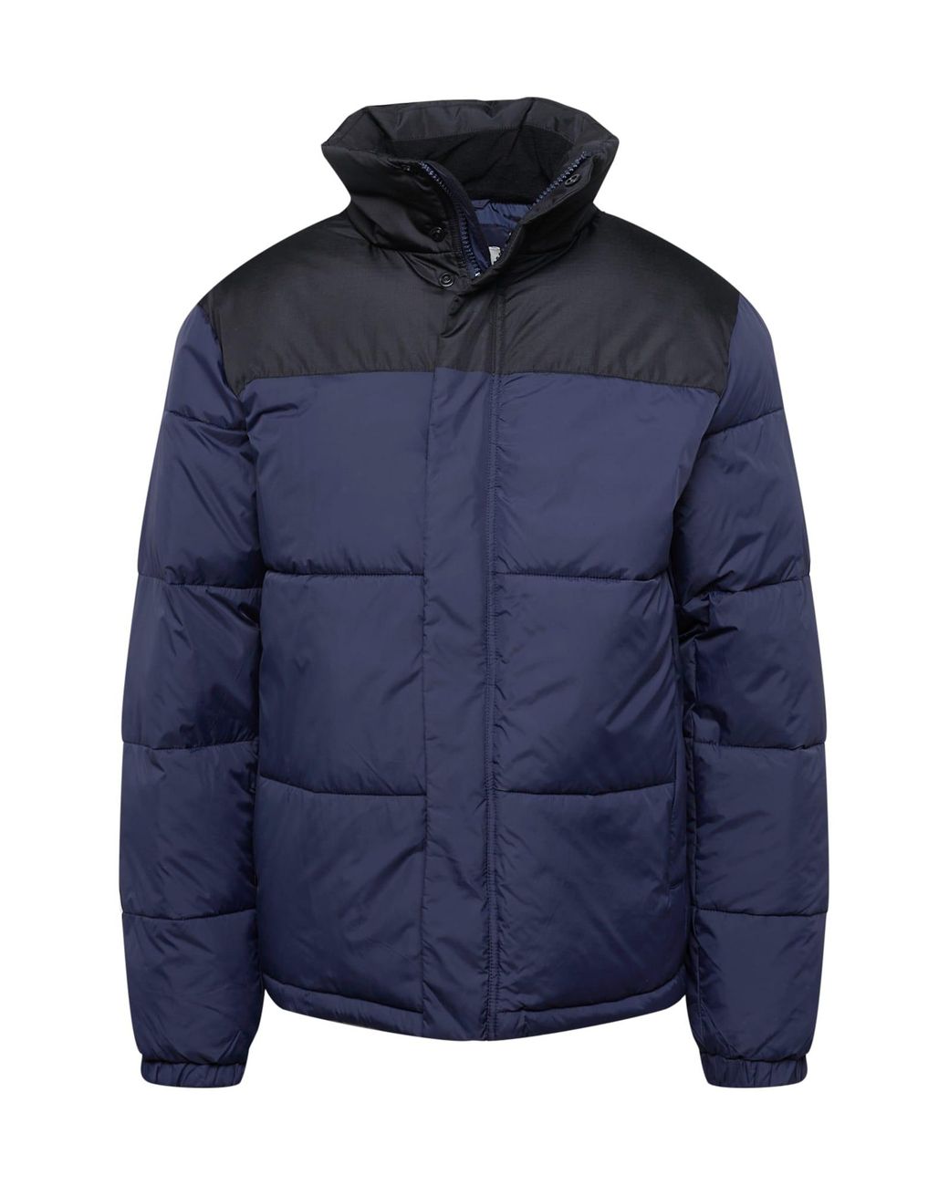 Design: Druckknopfleiste, Stehkragen, Verdeckter Reißverschluss, Seitliche Eingrifftaschen; Jackenart: Steppjacke; Fütterung: Warm gefüttert; Muster: Color-Blocking; Extras: Steppungen, Ton-in-Ton-Nähte, Glatter Stoff; Passform: Normale Passform Farbe: blau