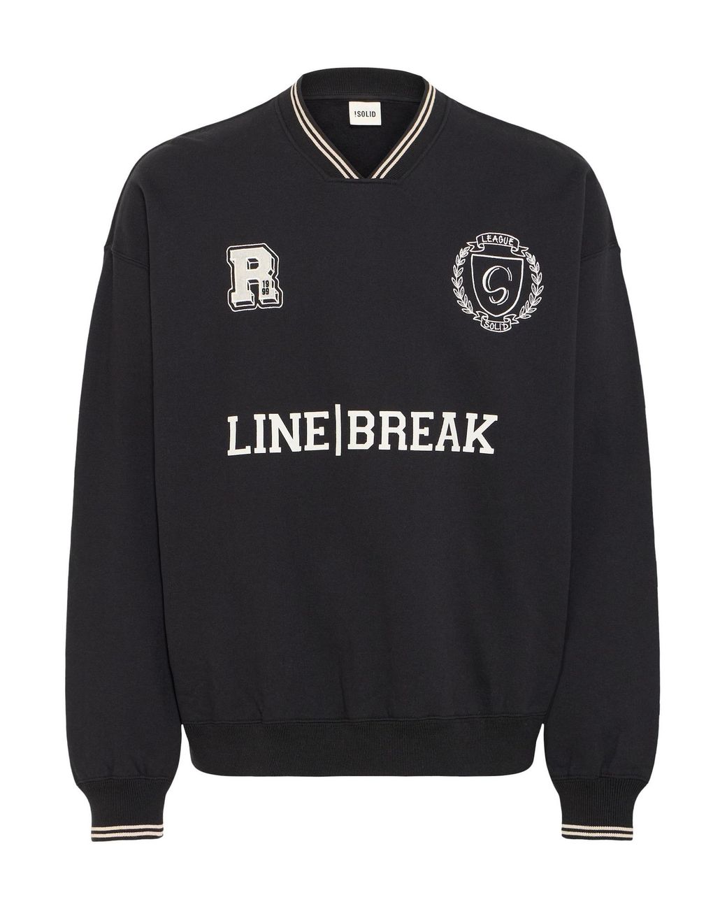 Design: Bündchen-/Rippstrick-Kragen; Material: Baumwolle; Ausschnitt: V-Ausschnitt; Muster: Logoprint; Extras: Label-Stickerei; Passform: Weite Passform; Ärmellänge: Langarm Farbe: schwarz
