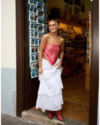 Weiter zu ASOSRöcke von South Beach Zusammenarbeit mit Influencerin Misha Grimes Mit hohem Bund Kordelzug in der Taille gestuftes Design Normale Passform. Farbe: weiß