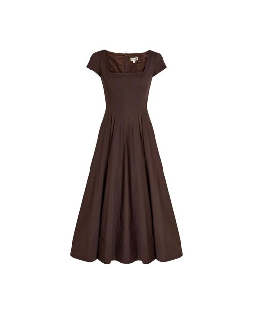 Das Wells Kleid von Staud ist ein Baumwoll-Popeline-Midikleid mit einem Mieder-artigen, unterteilten Oberteil, entworfen für einen schmeichelhaften Tages- oder Wochenendlook. Hauptmerkmale: Braun | Baumwoll-Popeline | Leichtes Gewebe | Leichte Stretchqualität | Verdeckter Reißverschluss hinten | Mieder-artiges, unterteiltes Oberteil | A-Linien-Midirock | Ärmellos | Unterteilte Konstruktion | Maße & Passform: Fällt größengerecht aus | Anliegend an Brust und Taille, locker an der Hüfte | Midilänge | Materialzusammensetzung & Pflege: 98% Baumwolle, 2% Elasthan | Nur chemische Reinigung Farbe: braun