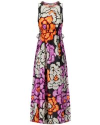Stine Goya Damen Schwarzes Blumenmuster Gerafftes Taillenkleid