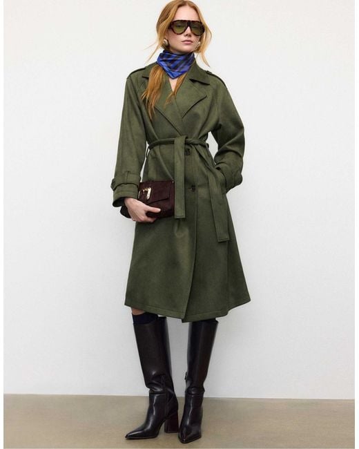 Damen – langer trenchcoat aus wildlederimitat in grün