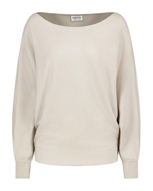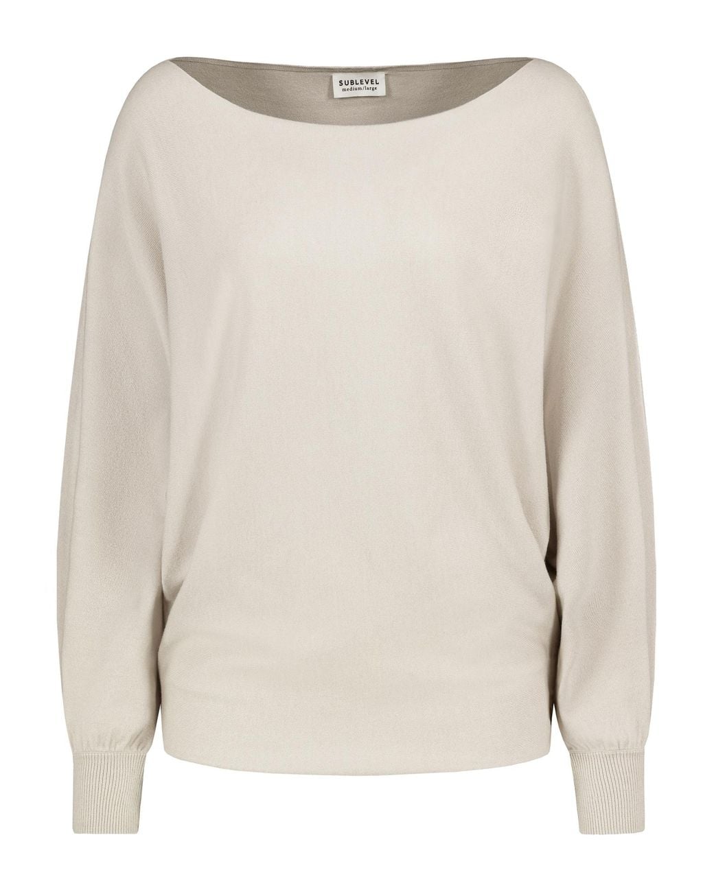 Design: Fledermausärmel; Material: Strick; Ausschnitt: U-Boot-Ausschnitt; Muster: Unifarben; Extras: Ton-in-Ton-Nähte; Passform: Lockere Passform; Ärmellänge: Langarm; Länge: Normale Länge Farbe: natur