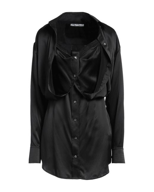 ALEXANDERWANG.T. Modell Hemdblusenkleid, Satin, ohne Applikationen, einfarbig, Klassischer Kragen, lange Ärmel, Unterkleid, Reißverschluss, Knopfverschluss, Ohne Taschen, Chemische Reinigung, nicht Bleichen, Trockner ungeeignet. 100% Seide, Baumwolle, Polyamid.