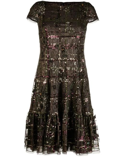 Dunkelgrün, ausgestellt, Metallic-Finish, Paillettenverzierung, U-Boot-Ausschnitt, verdeckter Reißverschluss hinten, kurze Ärmel, Midi-Länge. Size: 36. Gender: Female. Material:Polyester. Farbe: schwarz