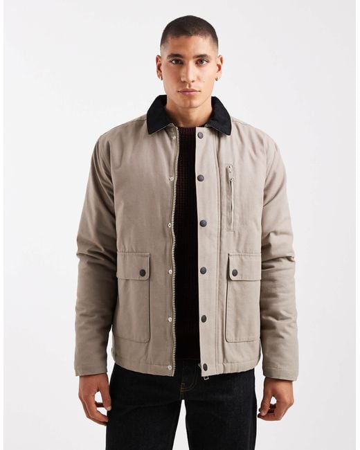 Jacken & Mäntel von Threadbare Cordkragen Reißverschluss und Druckknöpfe Brusttasche mit Reißverschluss aufgesetzte Taschen Normale Passform. Farbe: natur
