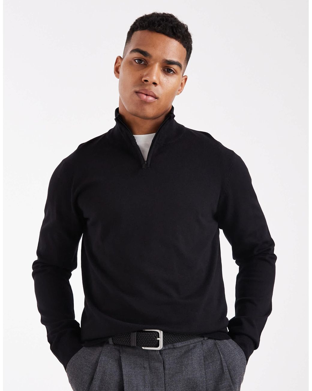 Pullover & Strickjacken von Threadbare Mit hochgeschlossenem Ausschnitt halber Reißverschluss Langärmlig gerippte Abschlüsse Normale Passform. Farbe: blau
