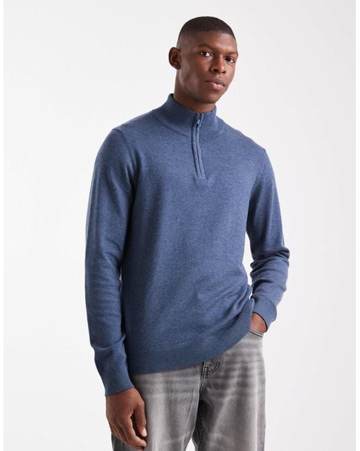 Pullover & Strickjacken von Threadbare Hochgeschlossen halber Reißverschluss Langärmlig Gerippte Abschlüsse Normale Passform. Farbe: blau