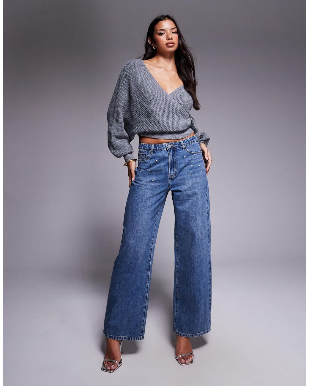 Damen – elira – gerade geschnittene jeans mit ösen-nietenverzierung, niedrig- bis mittelhohem bund und waschung in blau