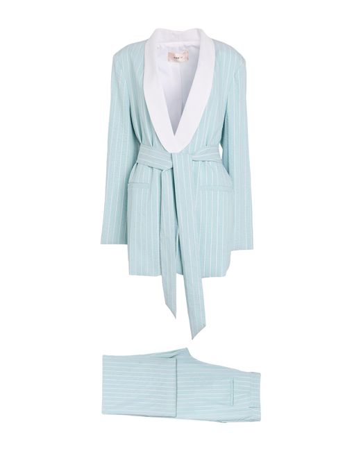 TOY G.. Hosen-Outfit, Tuch, Mit Metallic-Effekt, Nadelstreifen, ohne Applikationen, Reverskragen, Einreiher, lange Ärmel, gefüttert, Knopfverschluss, Paspeltaschen, Leistentasche, hohe Taille, Gürtelschlaufen, Maschinenwäsche oder Reinigung, nicht Bleichen, Trockner ungeeignet. 48% Viskose, 39% Polyester, 13% Nylon. Farbe: blau