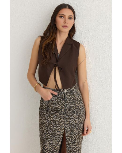 Braunes, Vorne Gebundenes, Gewebtes Hemd Mit Normaler Passform Für Damen
