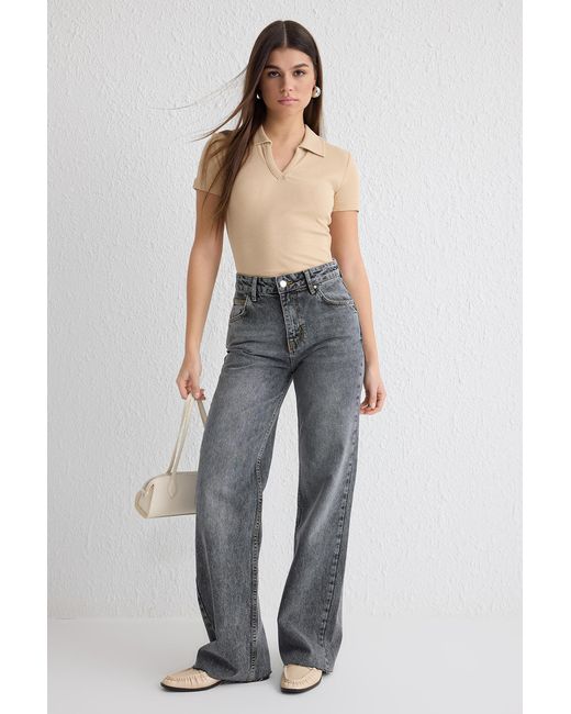 - Graue Jeans Mit Normaler Taille Und Weitem Bein Für Damen