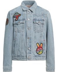 Weiter zu YOOXJeansjacke im Trucker-Stil, Denim, Délavé-Effekt, Einfarbig mit Applikationen, Brand Logo, Bestickt, Mittlere Waschung, Klassischer Kragen, Einreiher, lange Ärmel, Sportmanschetten mit Knöpfen, ungefüttert, Knopfverschluss, viele Taschen, Stretch, Maschinenwäsche, nicht Bleichen, Trockner geeignet. 98% Baumwolle, 2% Elastan. Farbe: blau