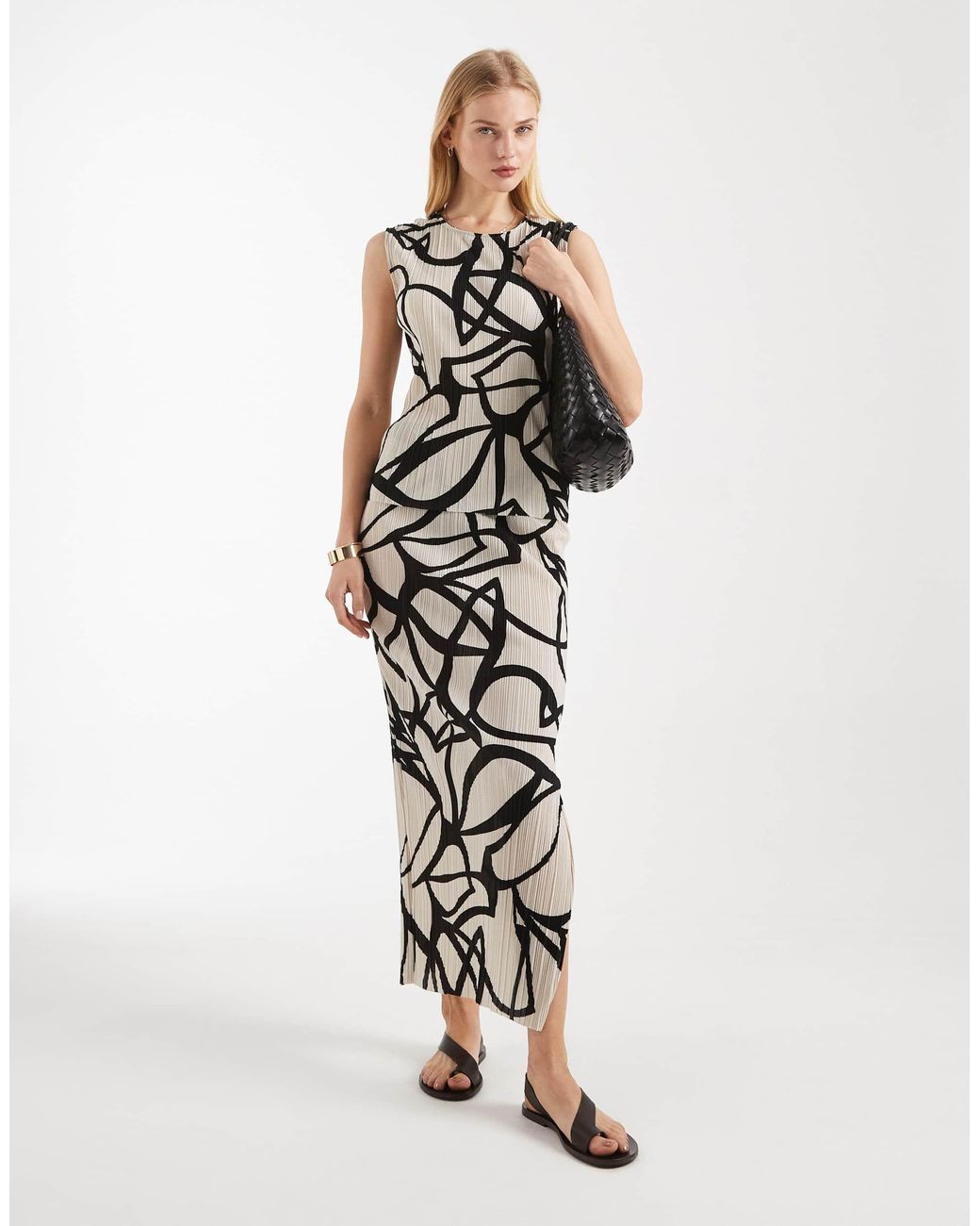 – plissee-maxirock mit abstraktem muster