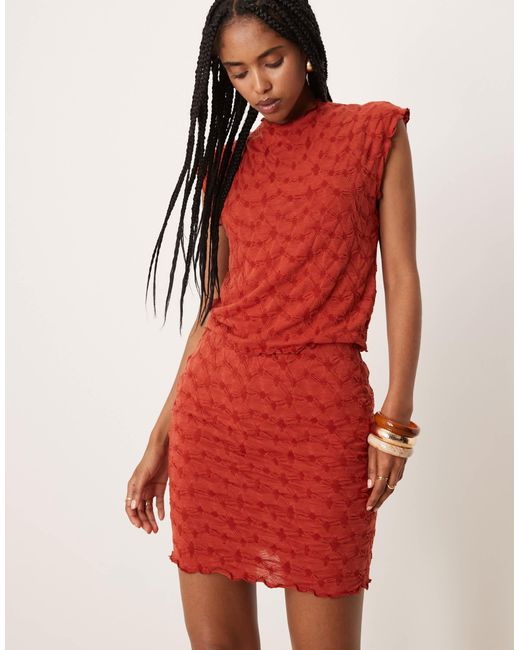 Röcke von Vila Teil eines Kombisets Oberteil separat erhältlich durchgehendes Muster Mit hohem Bund Elastischer Bund Normale Passform. Farbe: rot