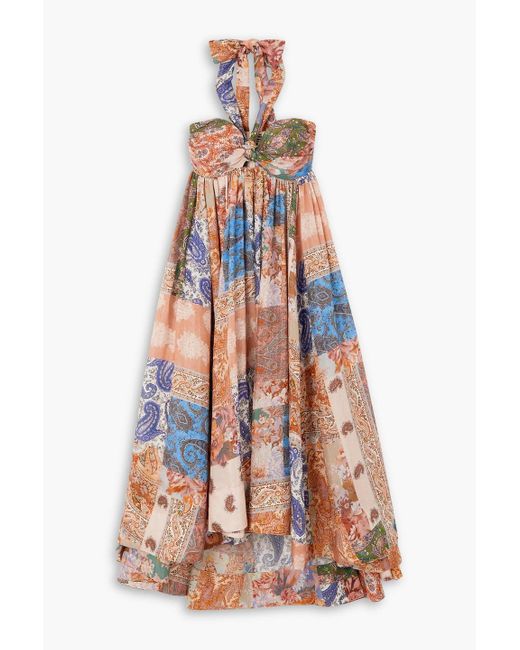 - Devi neckholder-midikleid aus seide mit paisley-print und raffungen