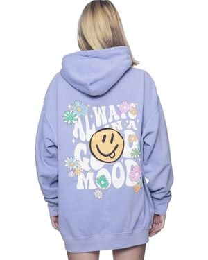 Oversized Hoodie Kapuzenpullover Sweatshirt PRINT HAPPY ALWAYS IN A GOOD MOOD - Blau