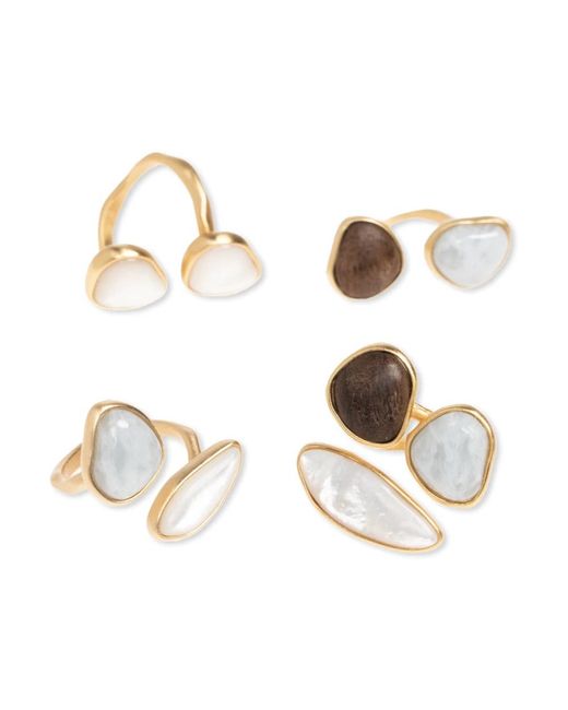 Die Cult Gaia Ina Rings verbinden goldfarbenes Metall mit natürlichem Perlmutt und dunklen Holzakzenten, um einen abstrakten, asymmetrischen Statement-Ring zu schaffen. Handgefertigte Details und kontrastierende Materialien unterstreichen die raffinierte Handwerkskunst und das zeitgenössische Design. Hauptmerkmale: Gelb | Gold | Perlmutt | Strapazierfähige Materialien | Handgefertigtes Finish | Unregelmäßige, asymmetrische Form | Abstraktes Design, inspiriert von natürlichen Formen | Kontrastierende Materialien (Perlmutt und dunkles Holz) | Keine sichtbaren Designer-Markierungen | Zusammensetzung & Pflege: Natürliches Perlmutt | Dunkles Holz | Messing | Goldfarbenes Metall Farbe: mettallic