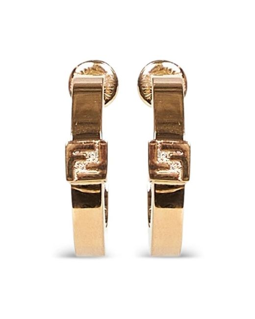 Fendi Forever Ohrringe sind kompakte goldfarbene Creolen, die das FF-Logo für einen dezenten Markenlook zeigen. Sie sind leicht und poliert und eignen sich gut für den Alltag sowie zum Aufwerten von Abendoutfits. Wichtige Merkmale: Gelb | Golden | Bronze | Stiftverschluss | Knebelverschluss | FF-Logo-Detail | Kleine Creole | Goldfarbenes Finish | Maße & Passform: Höhe: 2 cm | Breite: 2 cm | Zusammensetzung & Pflege: 100 % Bronze | Kontakt mit Wasser, Parfums, Lösungsmitteln und Schleifmitteln vermeiden. Mit einem weichen, trockenen Tuch reinigen. Farbe: mettallic