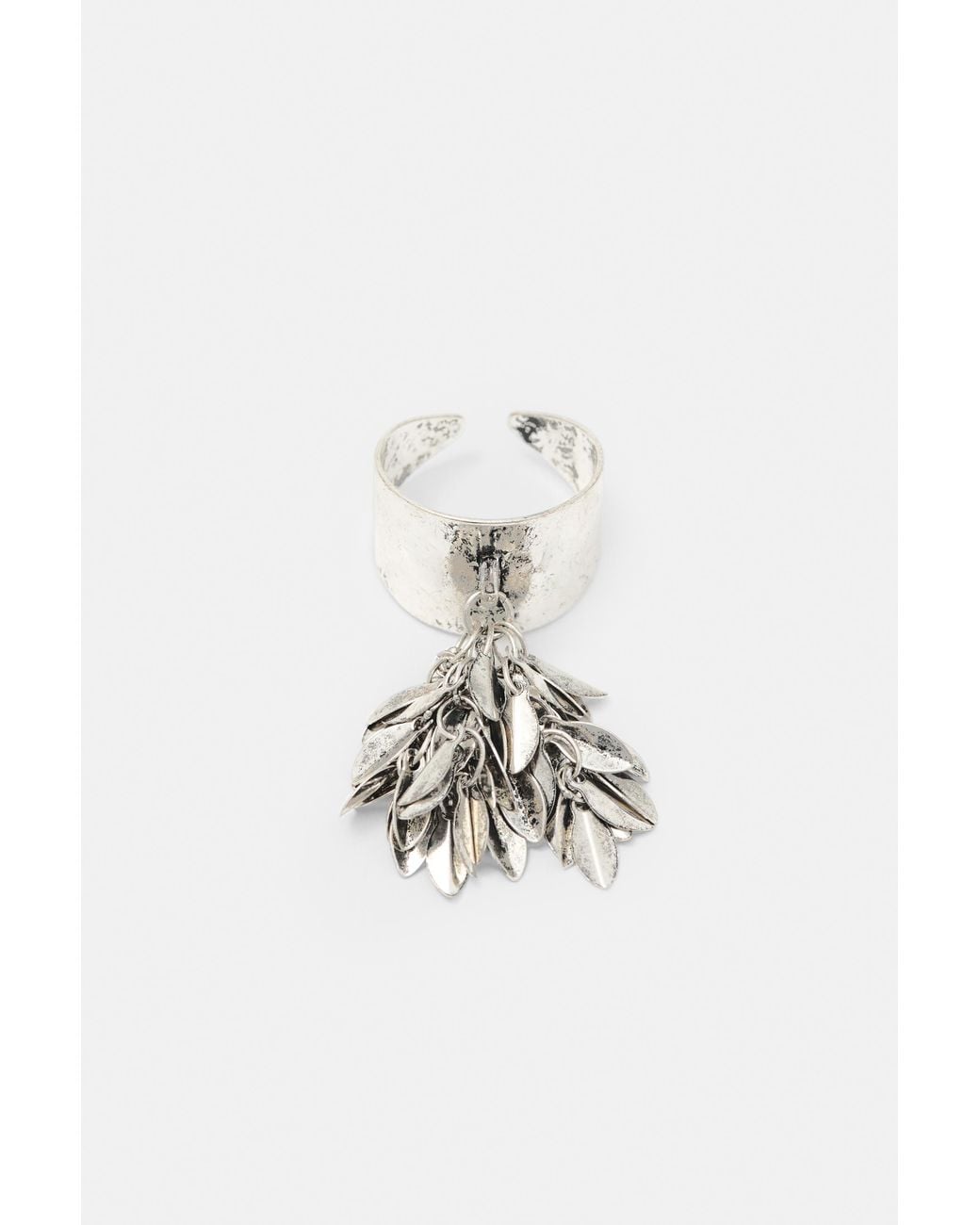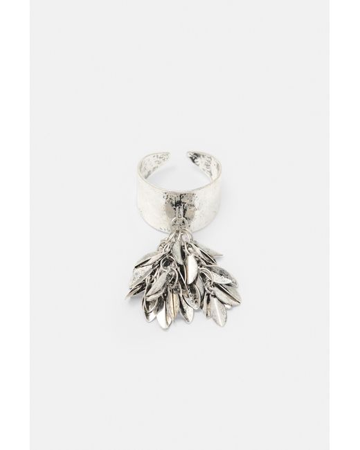 Metallisierter Ring mit Blattdetails. Farbe: weiß