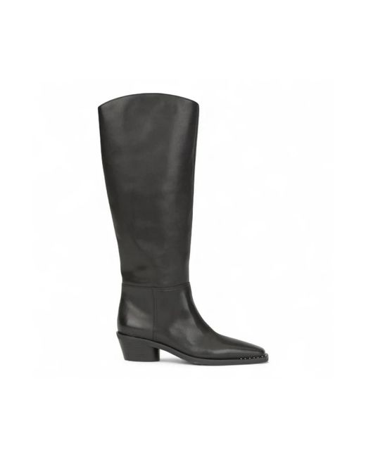 Shoppe im Sale: ASH Harpo Stivale ist ein Lederstiefel mit hohem Schaft und einem 5 cm hohen, eckigen Absatz, der Stabilität und femininen Stil vereint. Seine klare Silhouette und die leicht spitz zulaufende Spitze machen ihn zu einer vielseitigen Wahl für legere und elegantere Outfits. Hauptmerkmale: Schwarz | Nero | Leder | 5 cm hoher, eckiger (Block-)Absatz für Stabilität und Komfort | Hoher Schaft | Leicht spitz zulaufende Spitze | Lineare, minimalistische Silhouette | Abmessungen & Passform: Absatzhöhe: 5 cm | Nehmen Sie Ihre übliche Größe | Materialzusammensetzung & Pflege: Außenmaterial: Leder | Futter: Stoff und Leder | Innensohle: Leder | Laufsohle: Gummi Farbe: schwarz